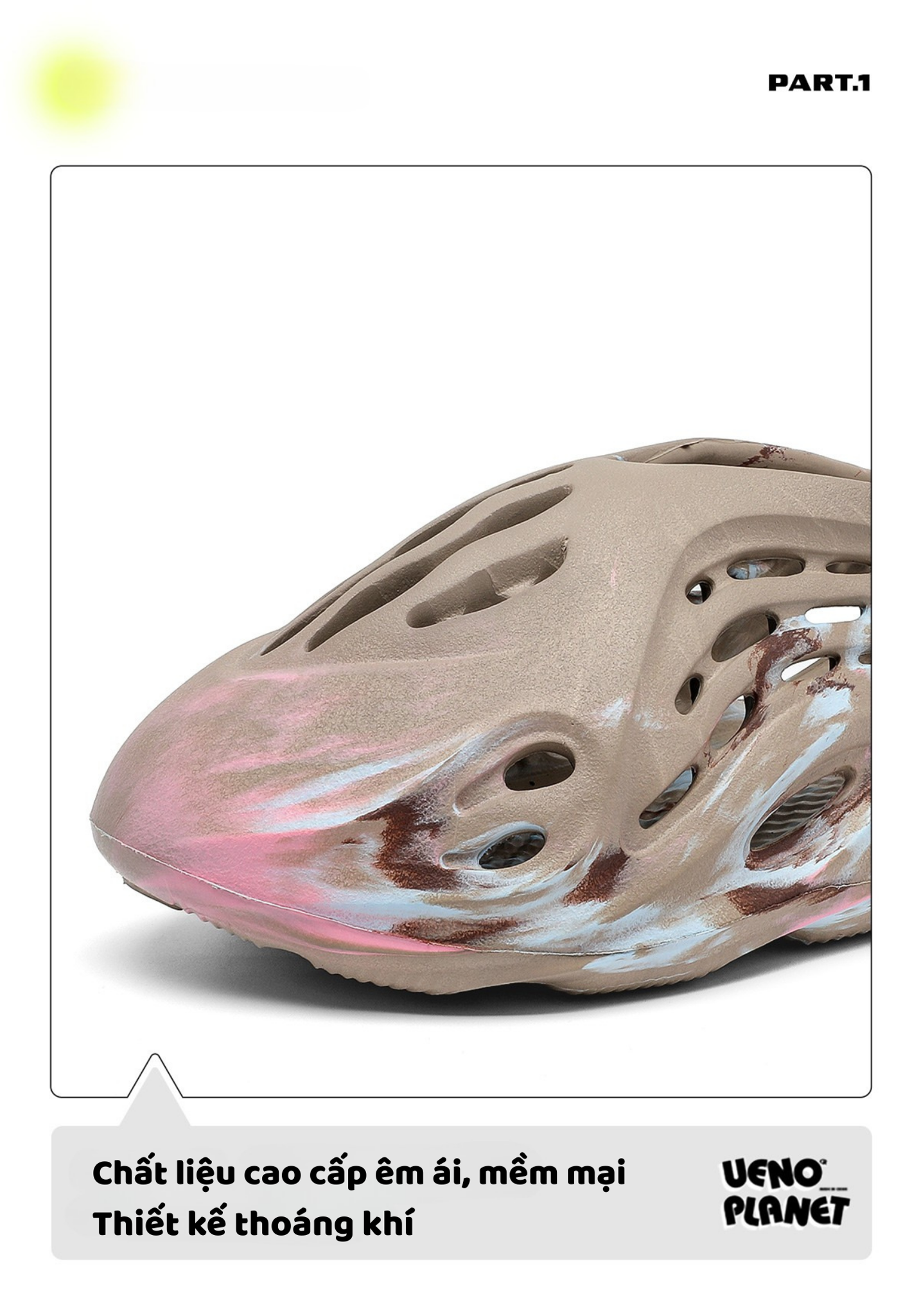 The CocoShell UenoPlanet – bộ sưu tập dép thể thao đột phá với thiết kế lỗ dừa độc đáo, thoáng khí 360°, đậm chất streetwear. Chất liệu EVA cao cấp siêu nhẹ, chống nước, bền bỉ, không biến dạng. Đế Foam đàn hồi giảm áp lực, êm ái, linh hoạt cả ngày. Phối màu loang độc bản, mỗi đôi là một tác phẩm nghệ thuật riêng biệt, khẳng định cá tính và phong cách năng động trên từng bước chân!