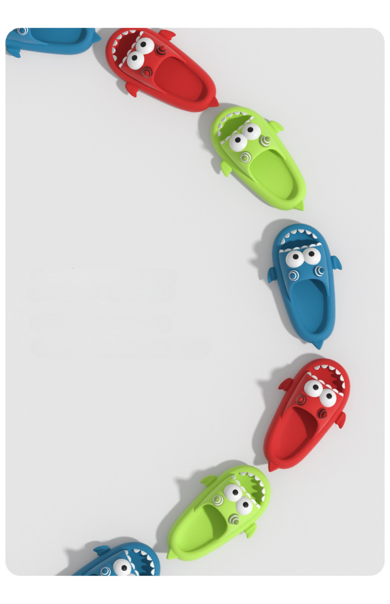The Goofy Shark Shaji - Dép Quái Vật Dễ Thương Nổi bật với thiết kế quái vật ngộ nghĩnh, màu sắc tươi sáng (xanh lá, đỏ, xanh dương), dép Goofy Shark làm từ EVA siêu nhẹ, êm ái, bền bỉ. Đế đàn hồi, chống trơn trượt, vân lớn tăng độ bám, đảm bảo an toàn và phong cách. Phù hợp mọi outfit, mang lại sự cá tính, nổi bật!