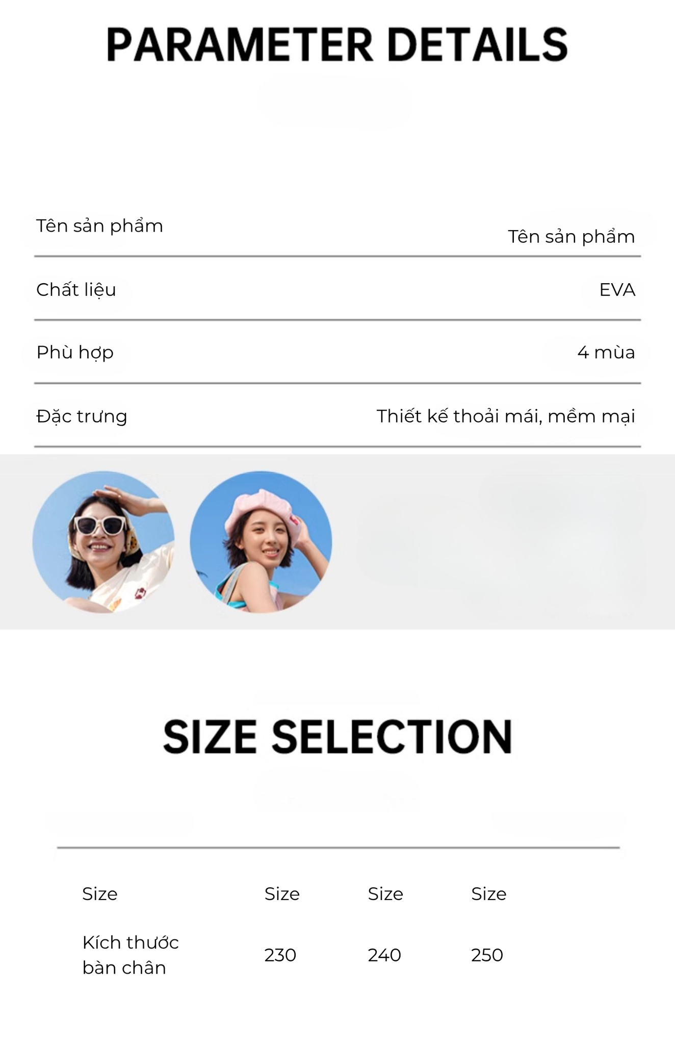 - Vật liệu: EVA cao cấp, phần quai có đục lỗ giúp thông khí, dễ vệ sinh.